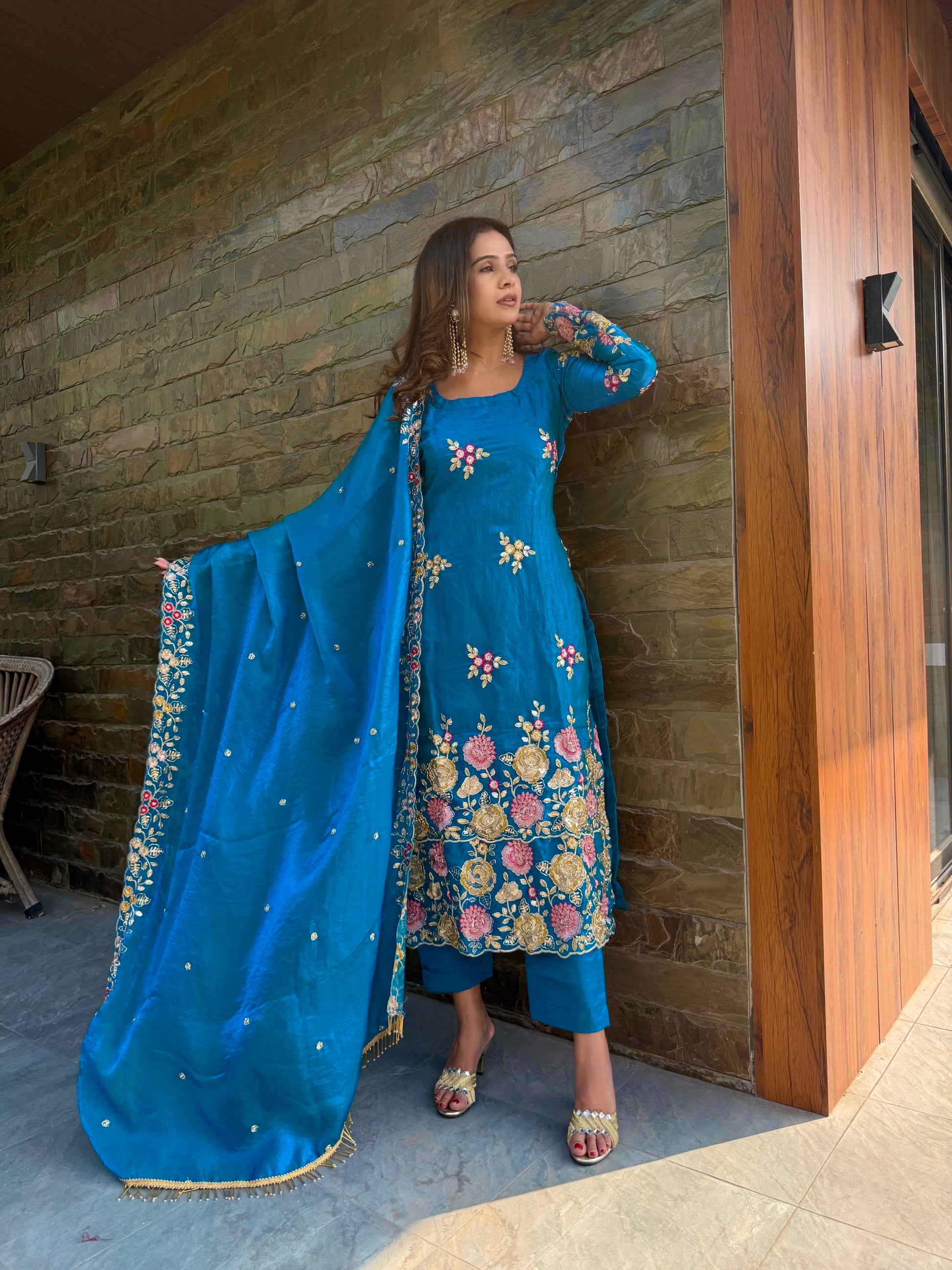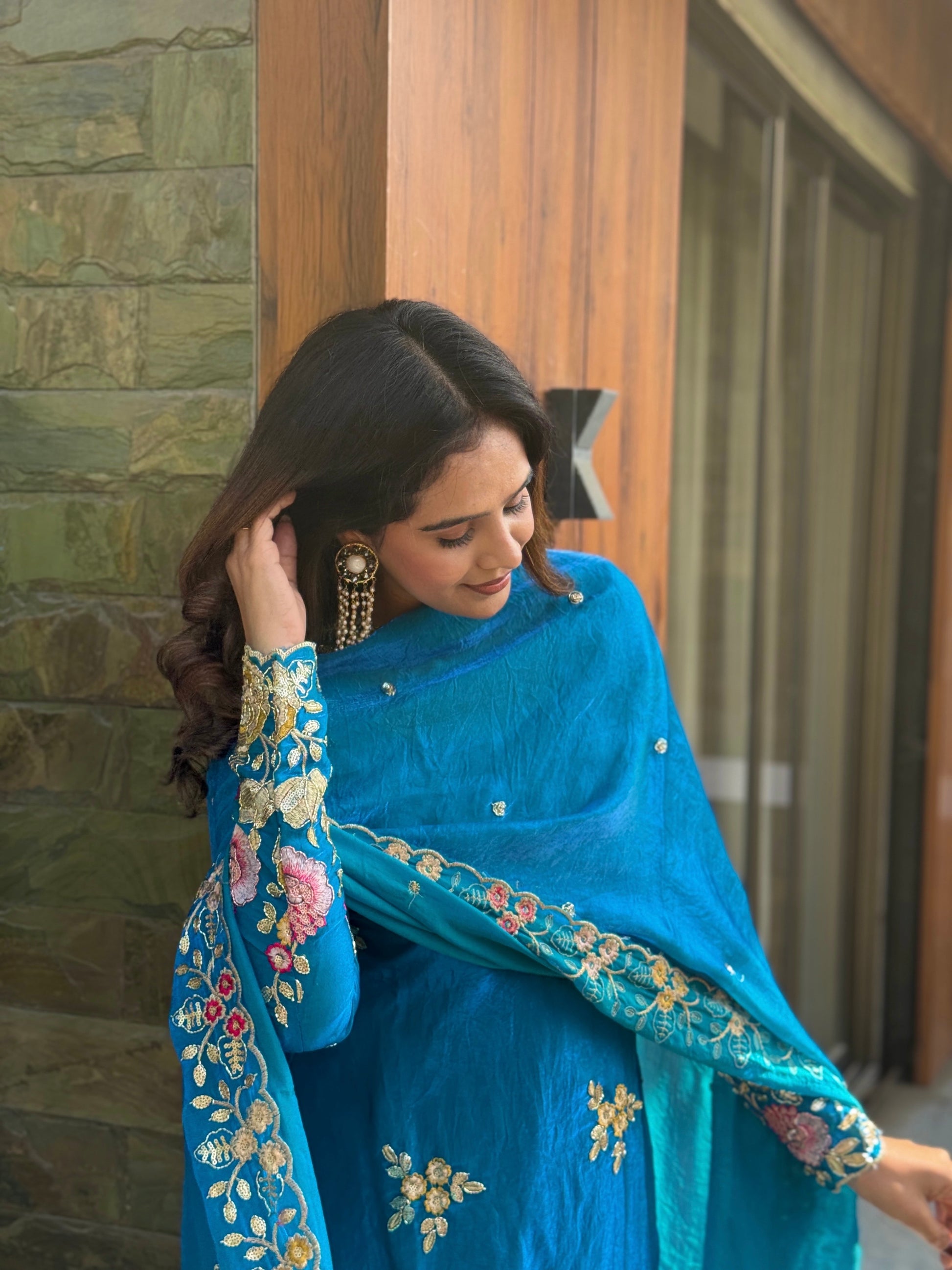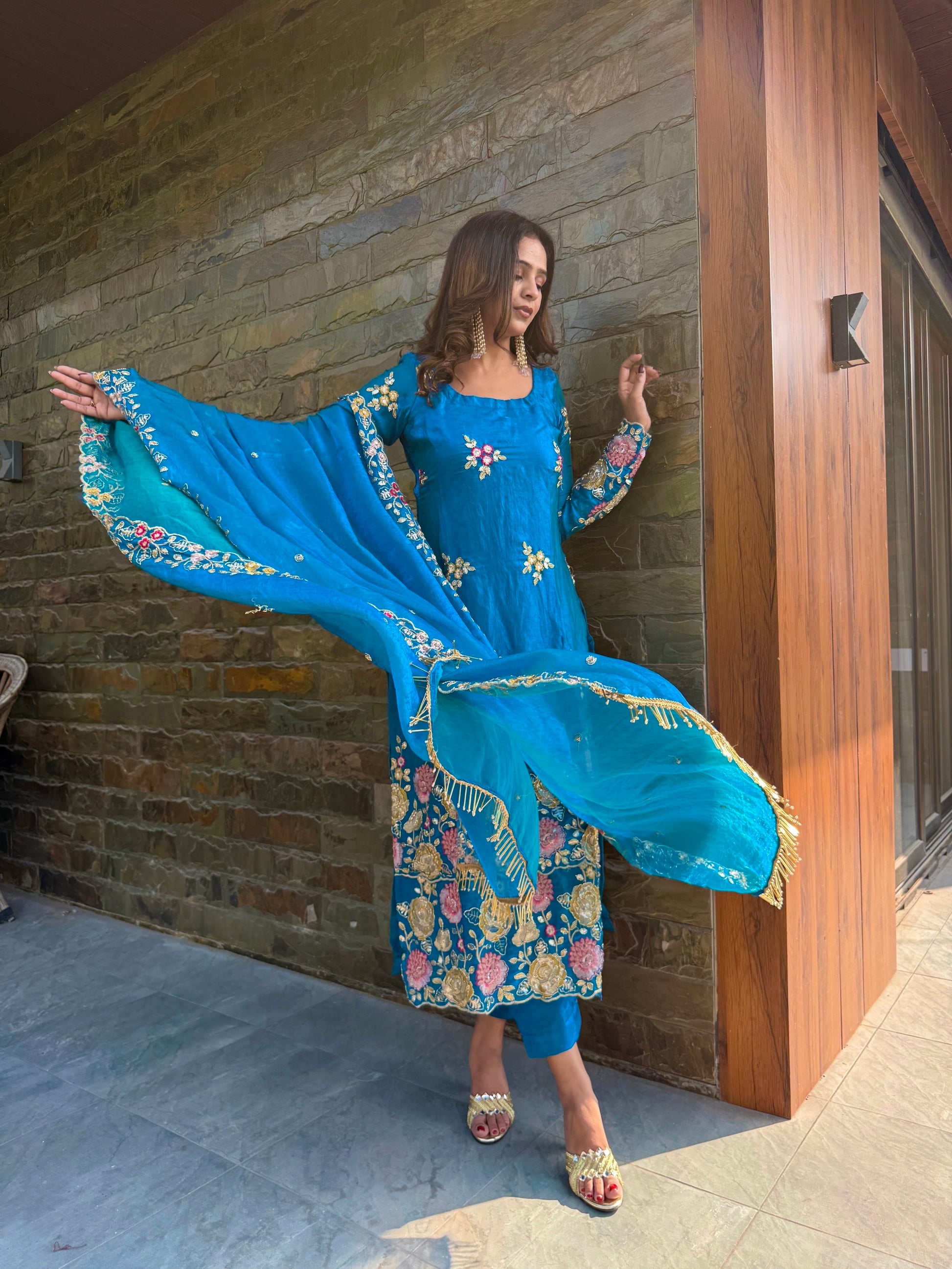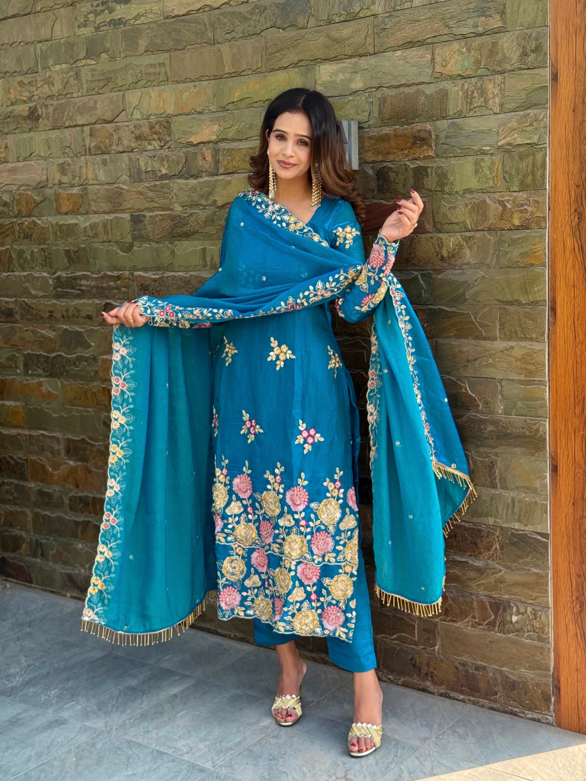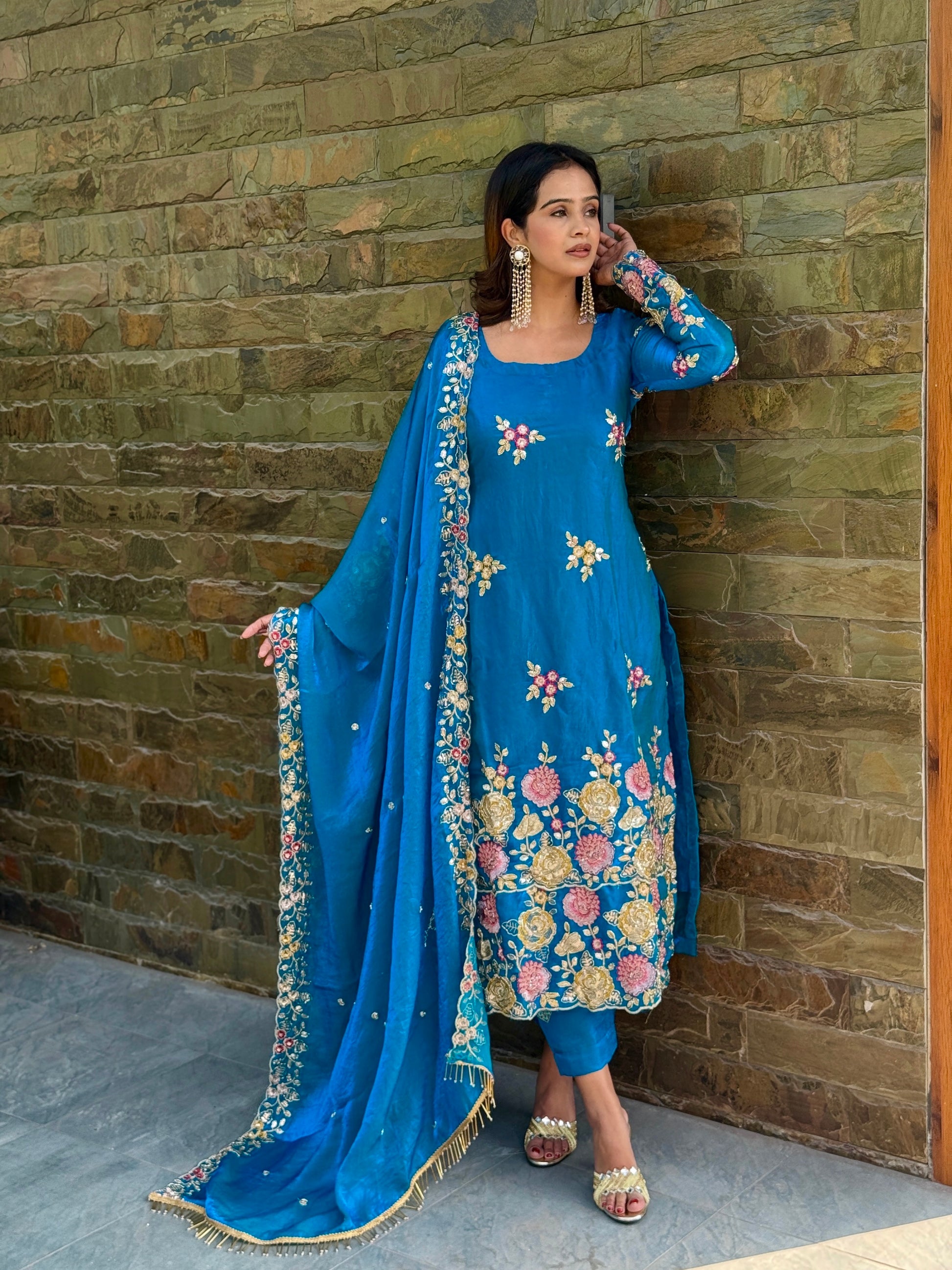 Draped in elegance, rooted in grace, this handwork dupatta adds on the shine and richness